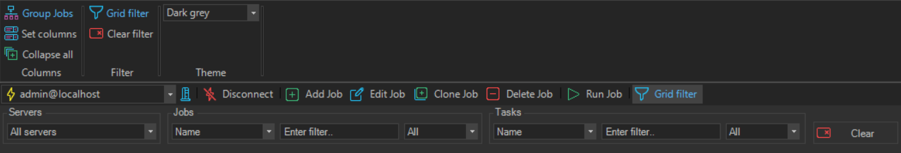 With the main menu Interface > Filter > Clear filter option and the toolbar Clear filter button it is possible to remove all grid filter settings.
