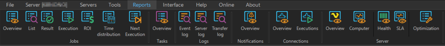 Jobs: Overview report contains a summary report of all existing Jobs and Groups.