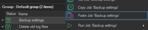 When a Job is defined, right-click on the Job or Task in the Server/Group/Job/Task grid and select Paste Job '<Job name>' to paste a previously copied Job.