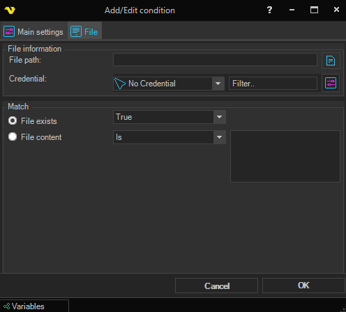 The File condition lets you check information about a certain file before running your Task or Job.