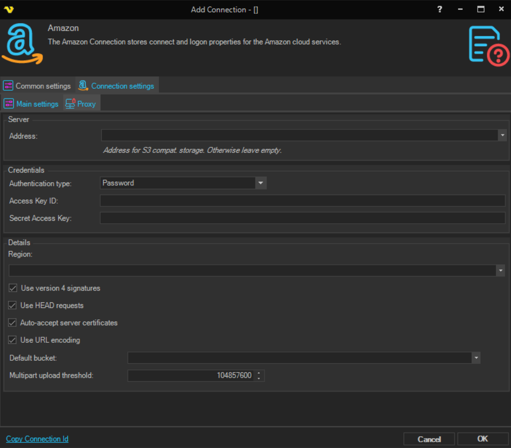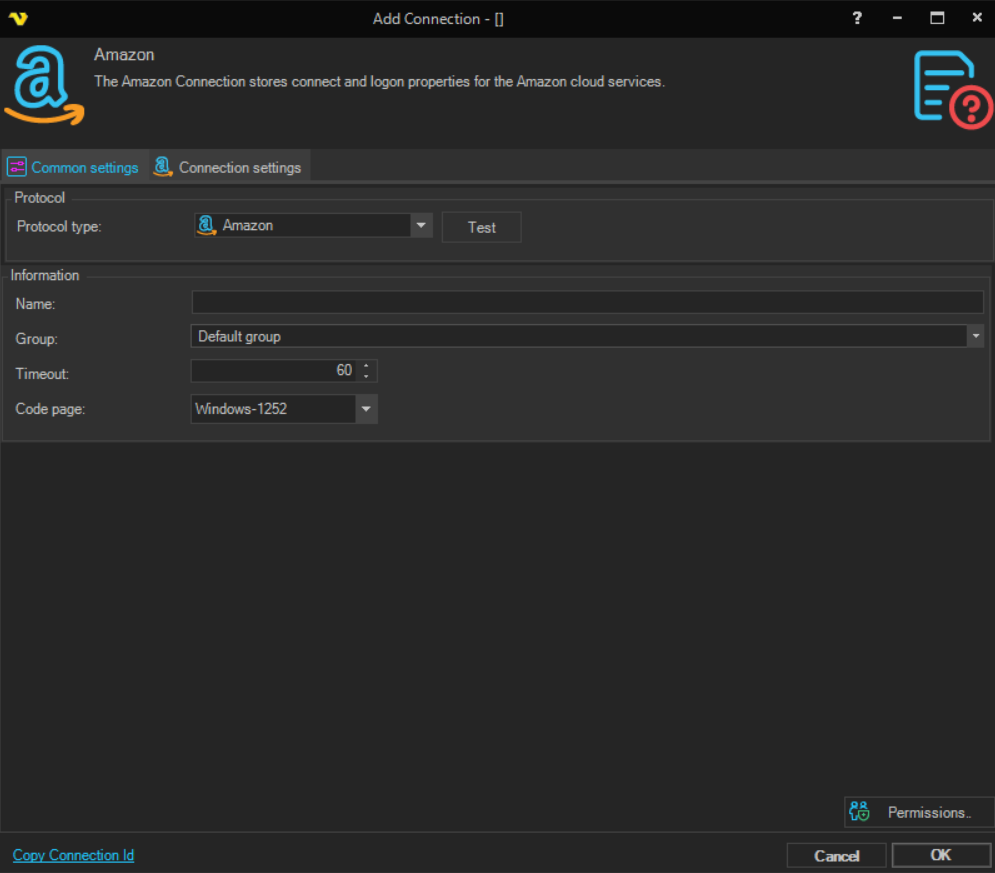 The Amazon Connection stores connect and logon properties for the Amazon cloud services.