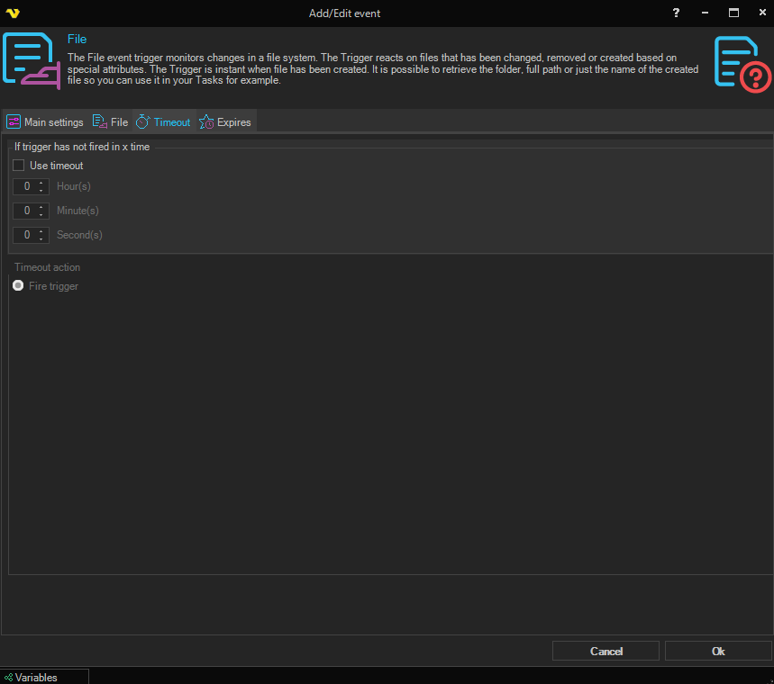 When VisualCron detects the timeout it will fire the event.
