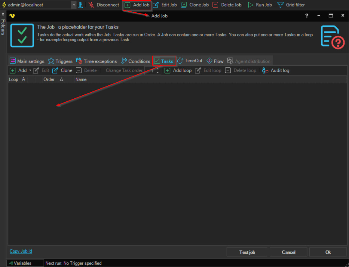 Add Job > Tasks > Add tab