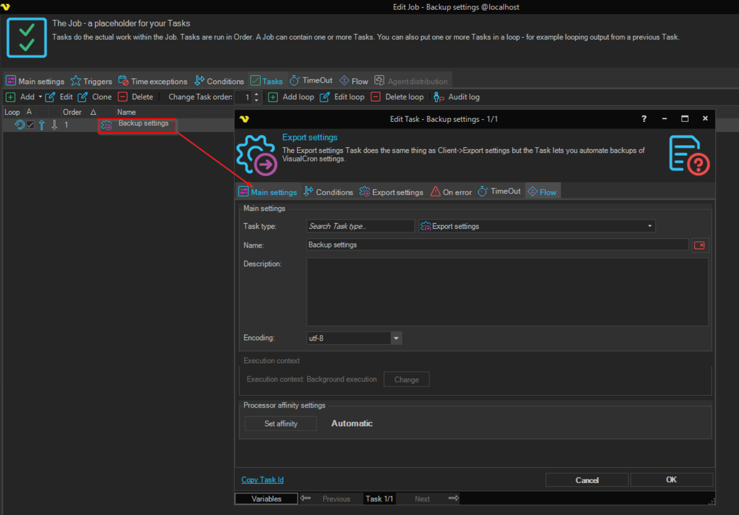 Task - Main Settings
