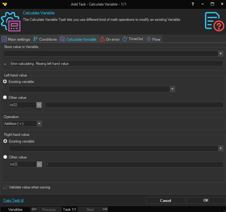 Task Internal - Calculate Variable
