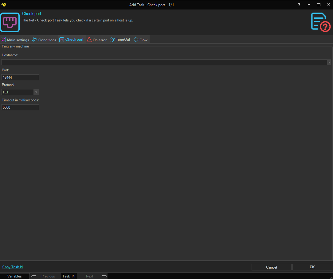 The Net - Check port Task lets you check if a certain port on a host is up.