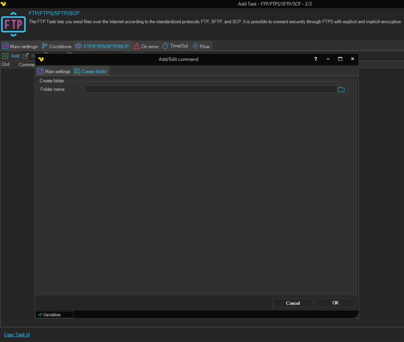The Create folder command creates a folder on the remote server.