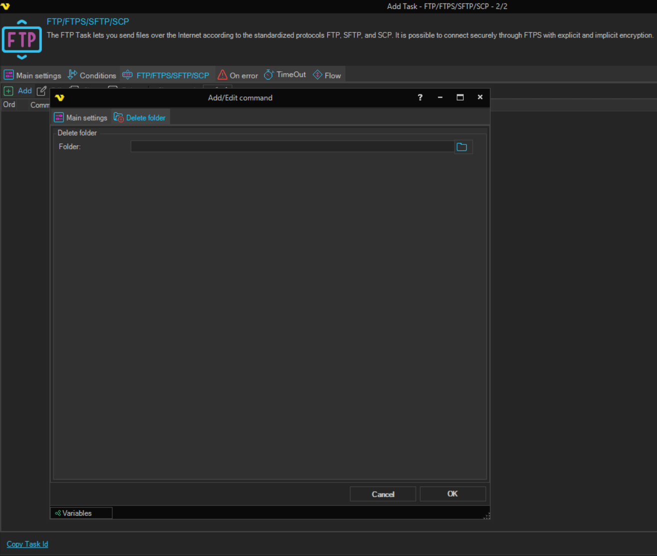 The Delete folder(s) command deletes one or more folders on the remote server.