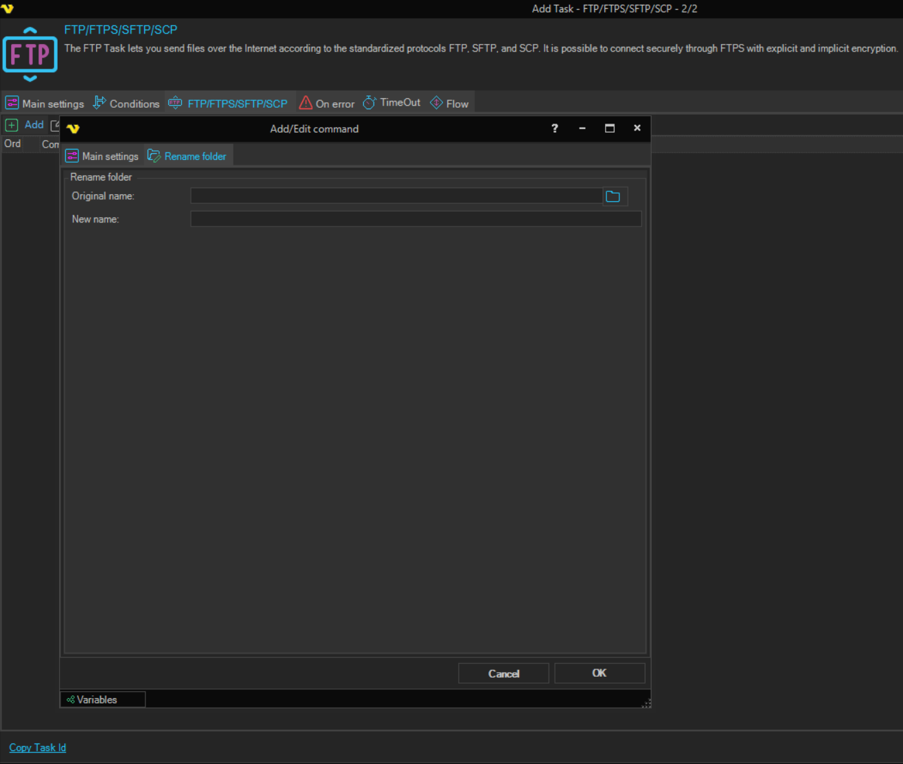 The Rename folder command renames a folder on the remote server.