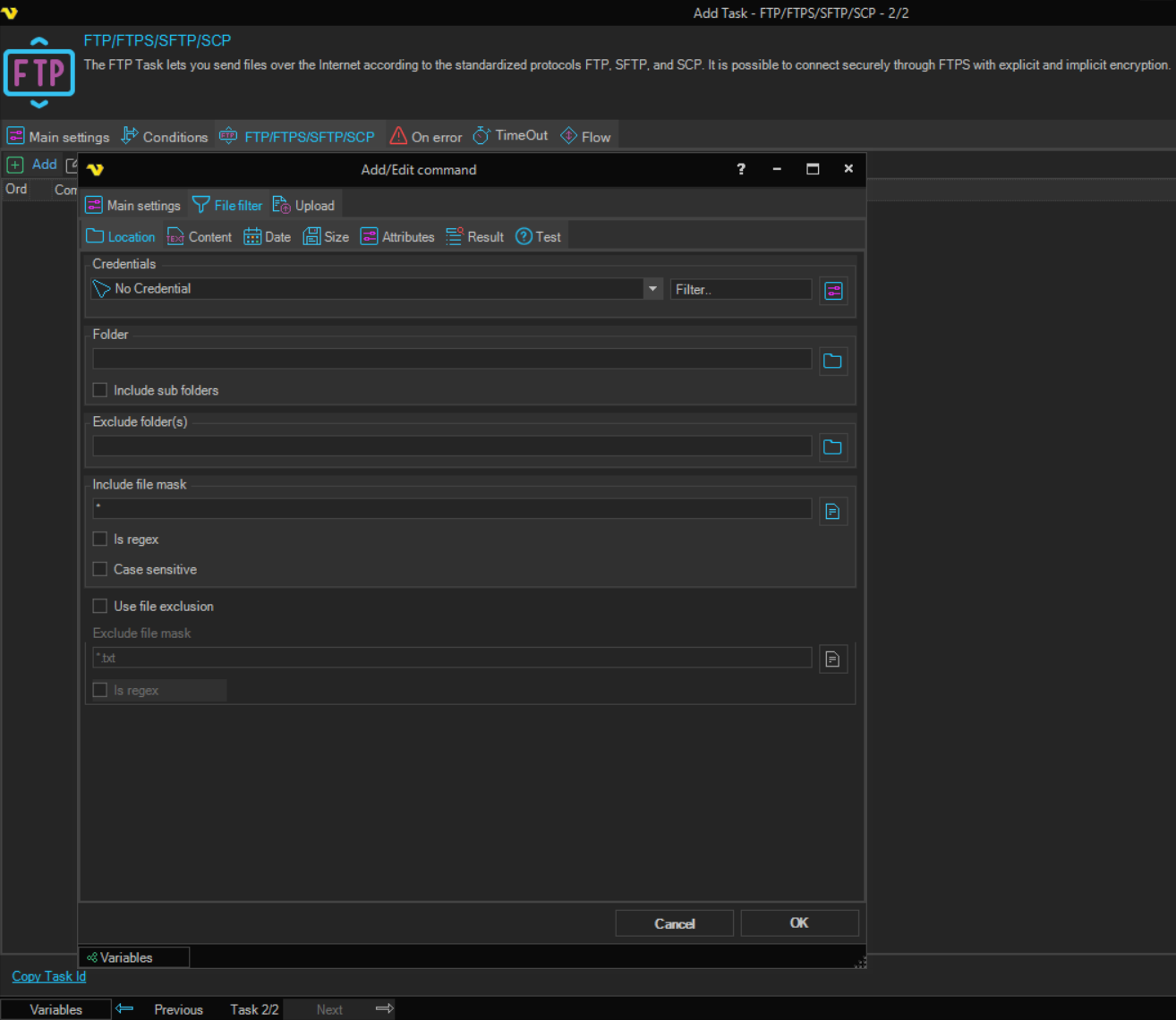 For upload, VisualCron uses the standard file filter to specify files that should be uploaded.