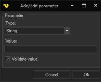 Choose appropriate value type and set the actual value. Normally VisualCron validates the value against the data type. If you use a Variable that validation can fail if the value is not set in the Variable. To prevent failure you can uncheck the Validate value checkbox.