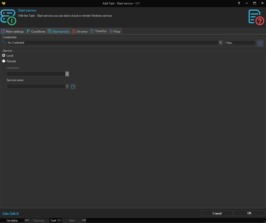 - Local or Remote Select the the Local radio button if you want to start a service on the local computer, select the Remote* radio button if you want to start a service on a remote computer.