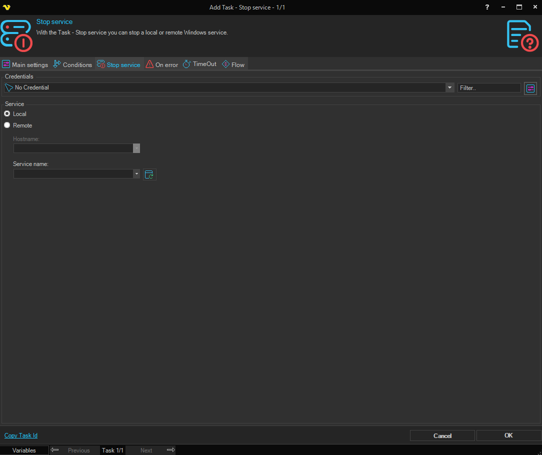 To control a remote computer you may need to use a Credential. The Credential must match the user name and password of the user that you want to login for. Select a Credential in the combo box or click the Settings icon to open Manage credentials in order to add or edit Credentials.