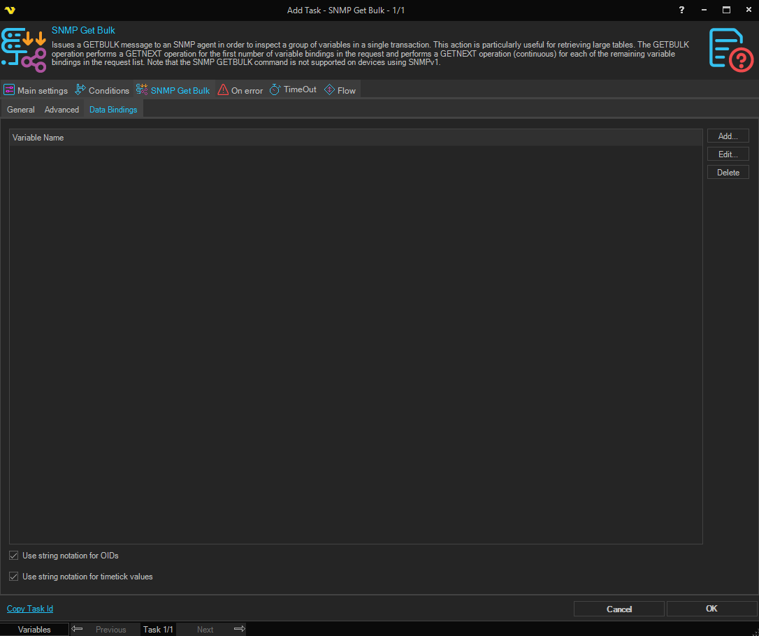 Task SNMP - SNMP Get Bulk