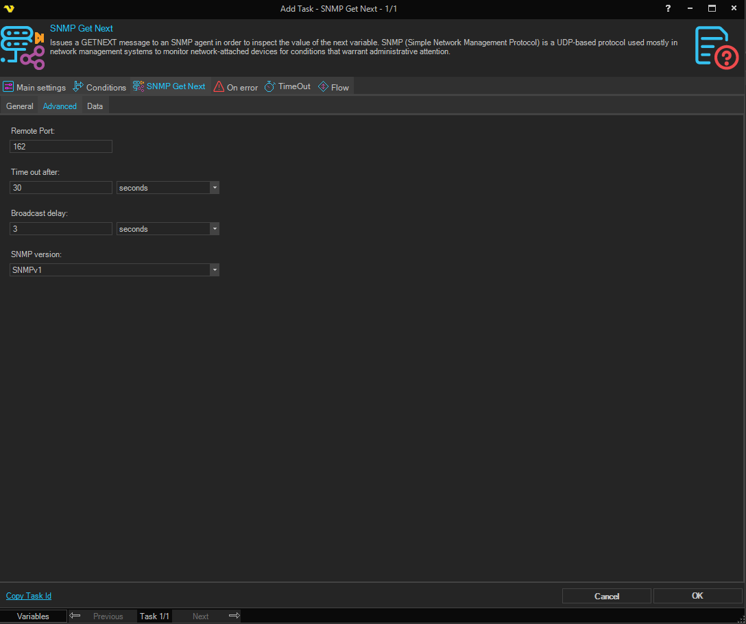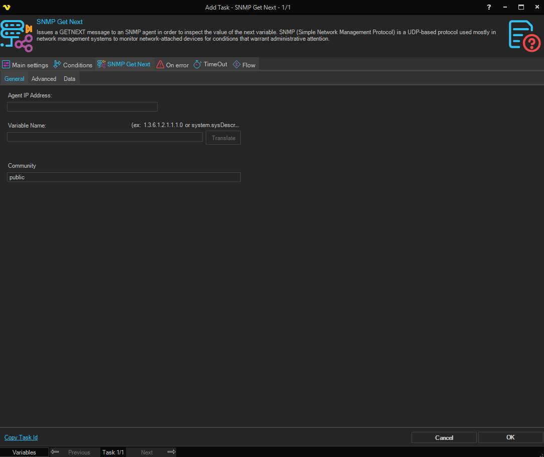 Task SNMP - SNMP Get Next