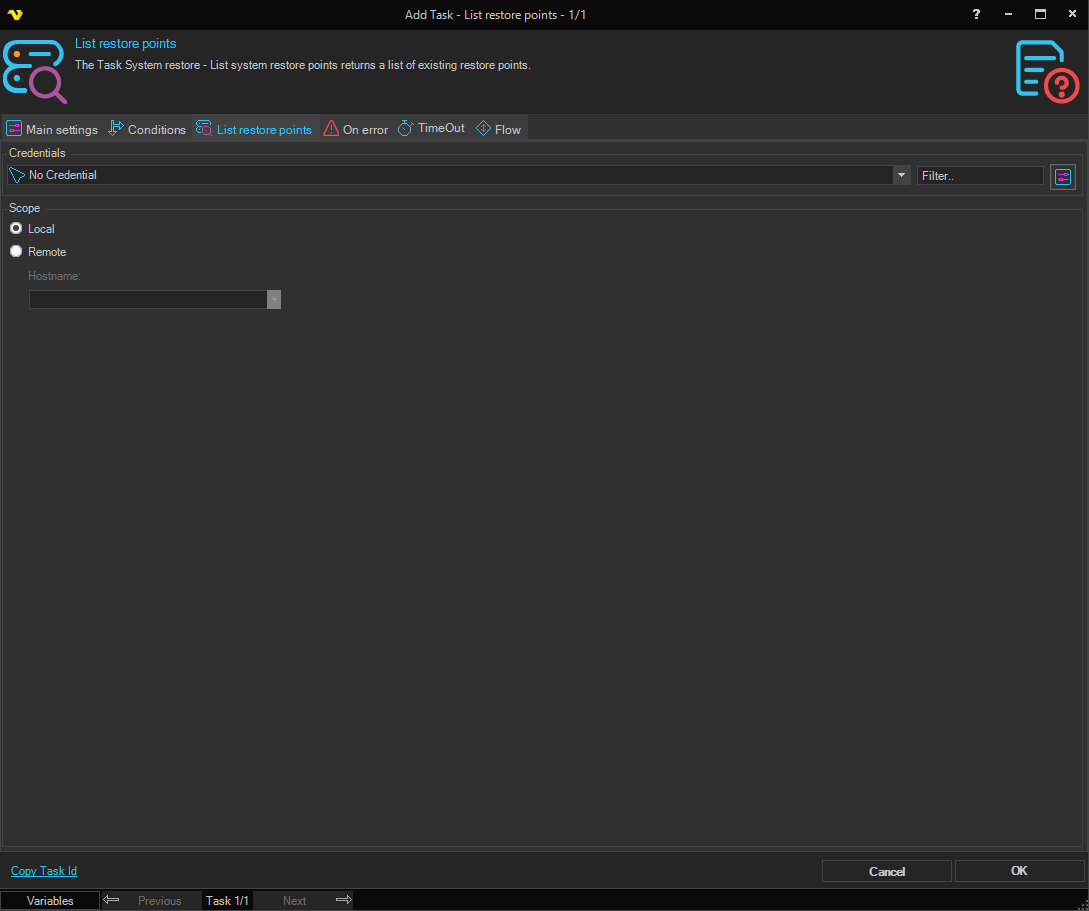 To control a remote computer you may need to use a Credential. The Credential must match the user name and password of the user that you want to login for. Select a Credential in the combo box or click the Settings icon to open Manage credentials in order to add or edit Credentials.