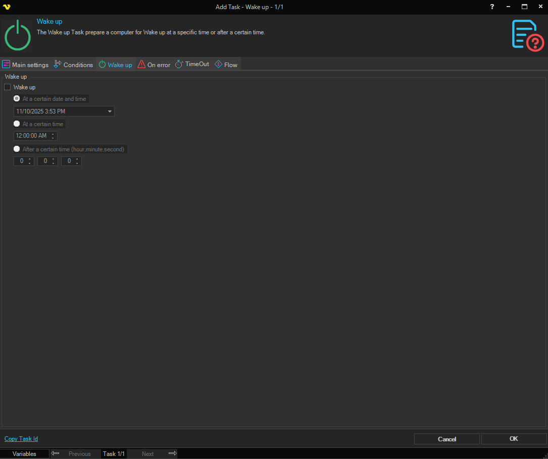 The Wake up Task prepare a computer for Wake up at a specific time or after a certain time.