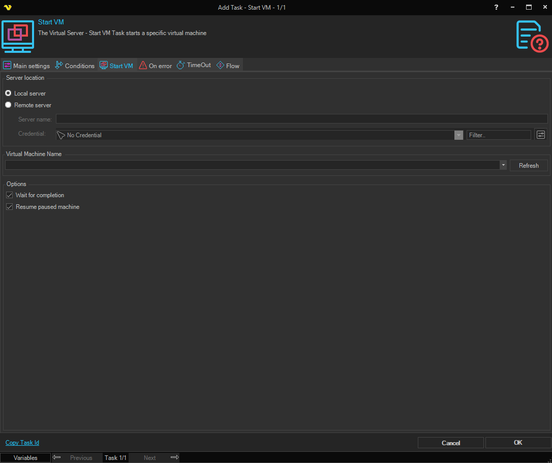 Task Virtual Server - Start VM