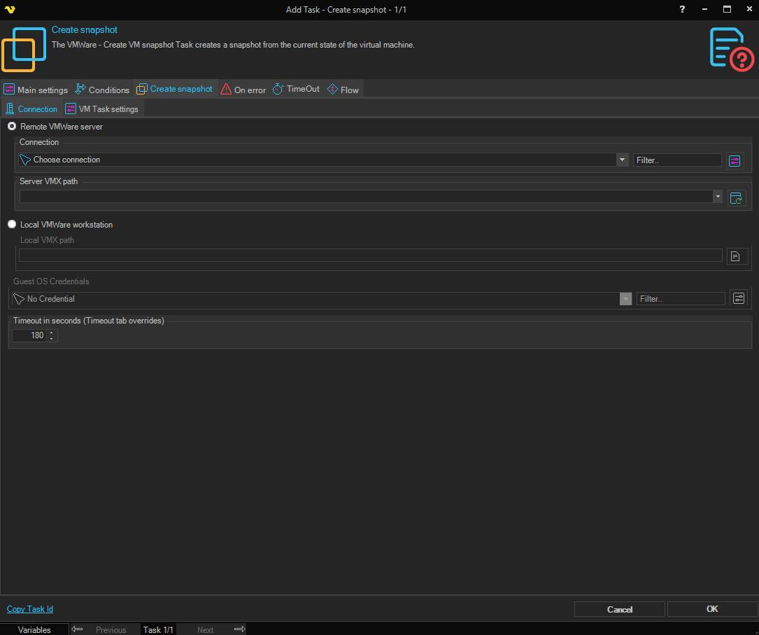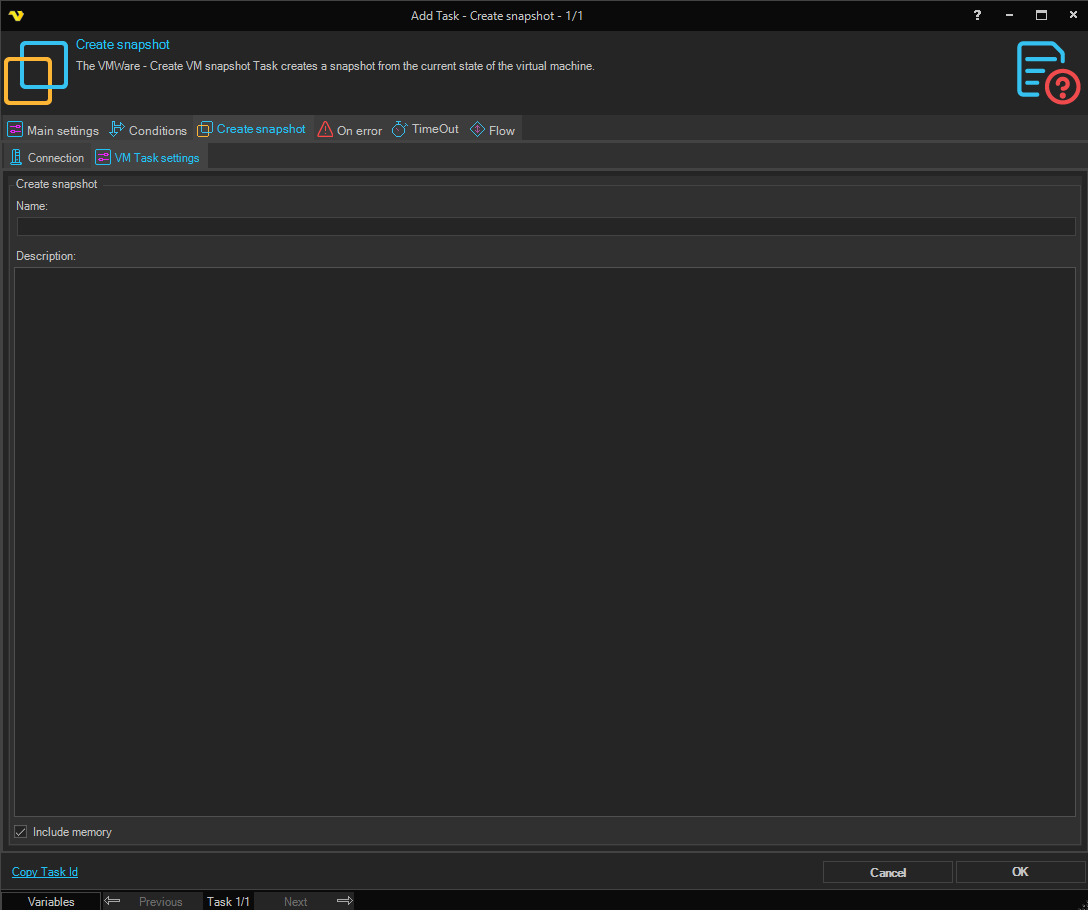 Task VMWare - Create VM Snapshot