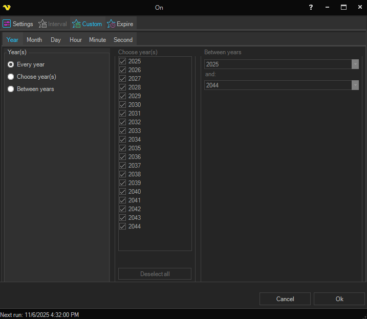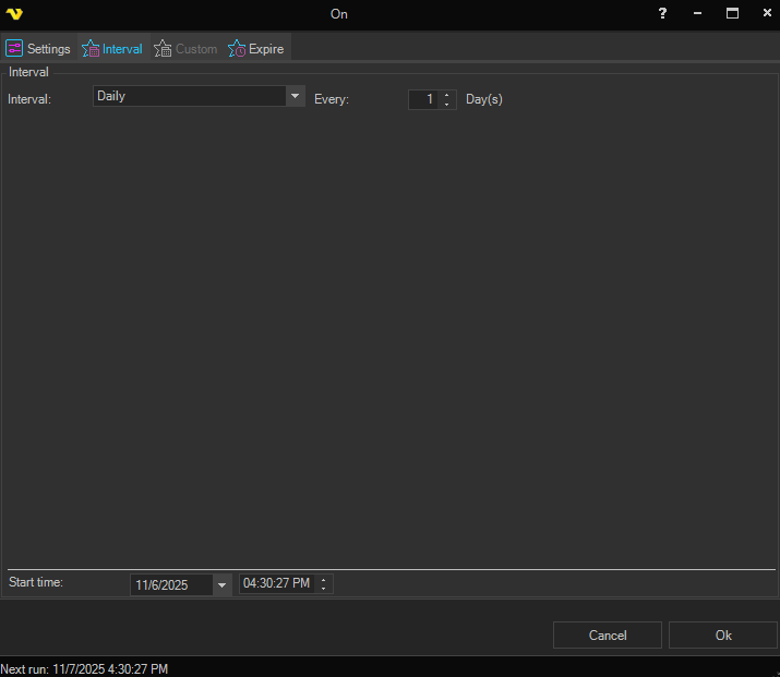 This time trigger is a simplified Custom time trigger. Different Interval options are available.
