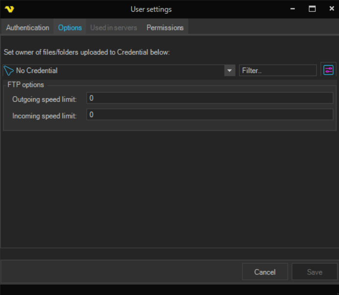 It is possible to link a VC user to a MFT user or use a specific user account just for MFT. When link is selected it will be using the username and password for the specific VC user.