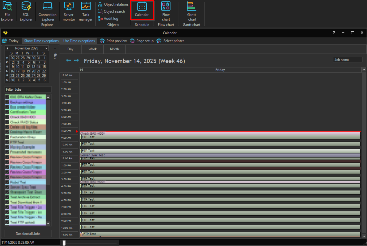 The main menu Tools > Schedule > Calendar option presents an overview of scheduled Jobs. This way you can, for example, plan your Tasks (so they don't run at the exact same time).