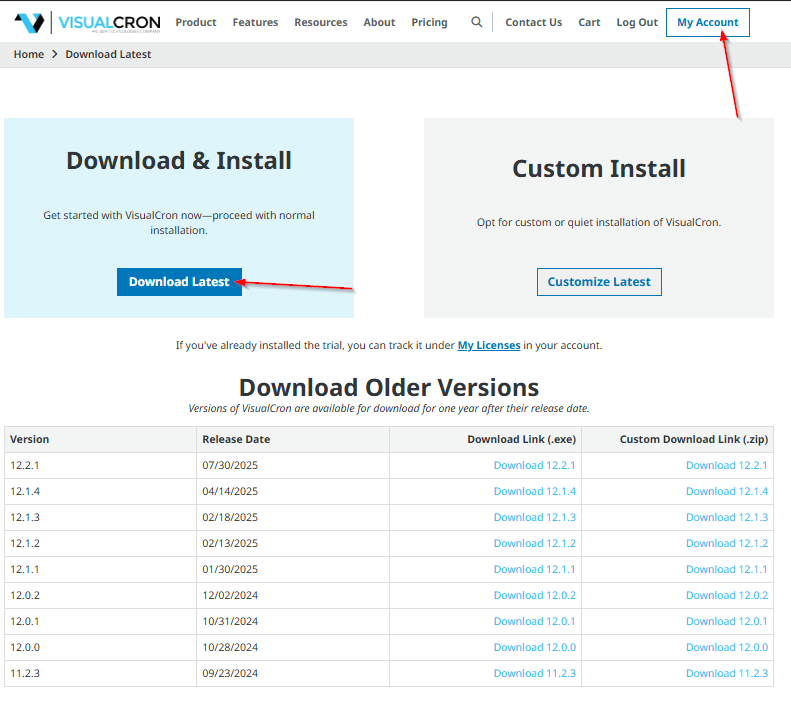 To be sure to get the latest version, we encourage you to download VisualCron from this web page.