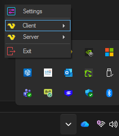 The Tray Client is located to the right in the below image. Right click to interact.