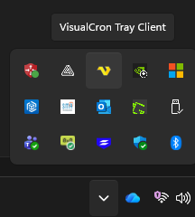 The VisualCron Tray Client is an application that is part of the VisualCron system. It is shown with a VisualCron icon in the notification area normally located in the bottom right of the Windows screen.